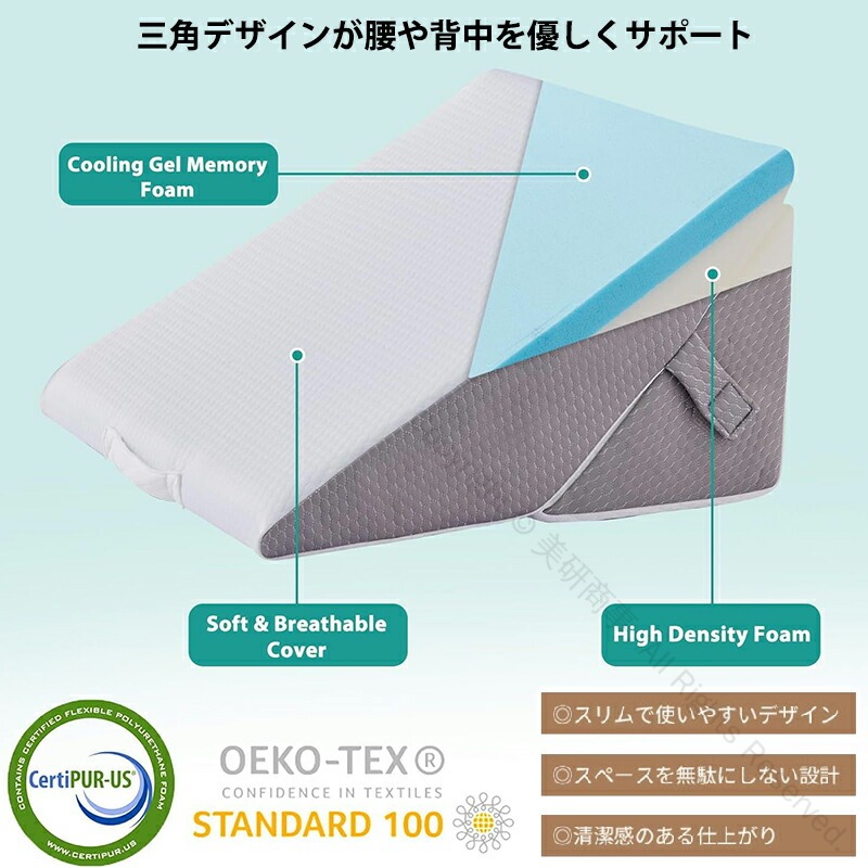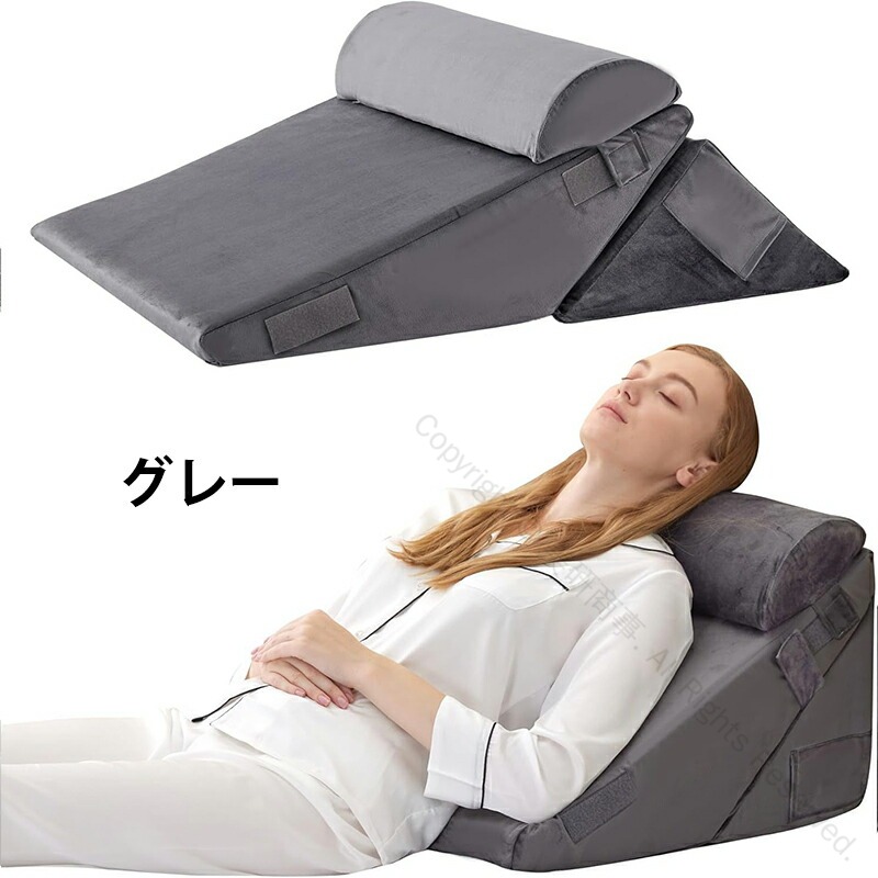 三角クッション 高反発 背もたれクッシ インテリア 寝具 収納 人気 グレー ホワイト/グレー