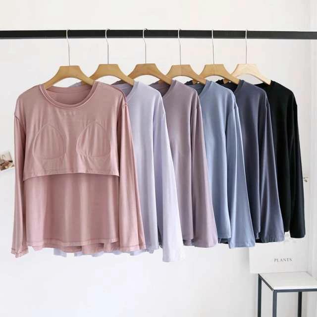 パット付長袖Tシャツ ラウンドネック ウィッグ つけ毛 フルウィッグ 超目玉商品 ピンク ブルー ダークグレー ダークパープル ライトパープル ブラック M L XL 2XL