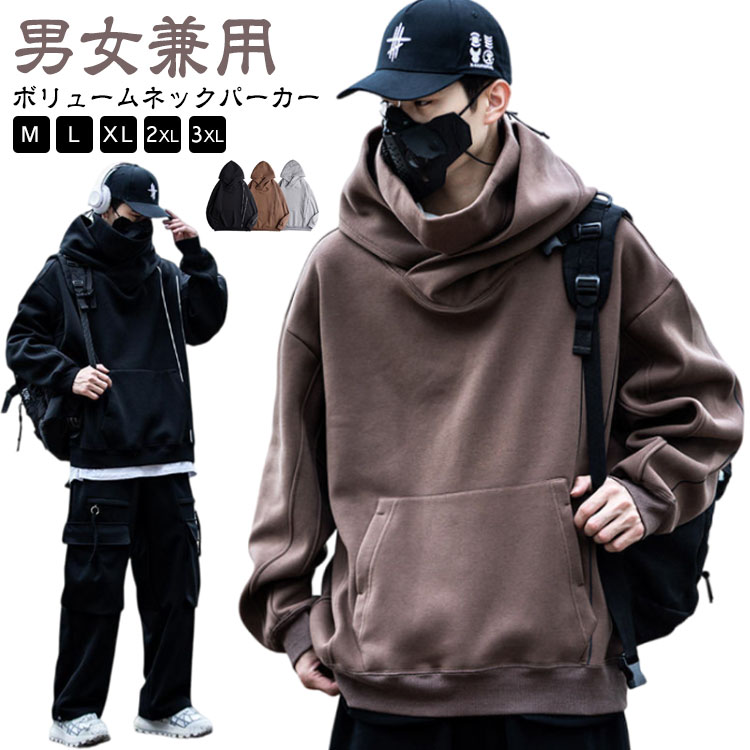 ボリュームネックパーカー メンズ レデ メンズファッション 続々登場 ブラウン グレー ブラック M L XL 2XL 3XL