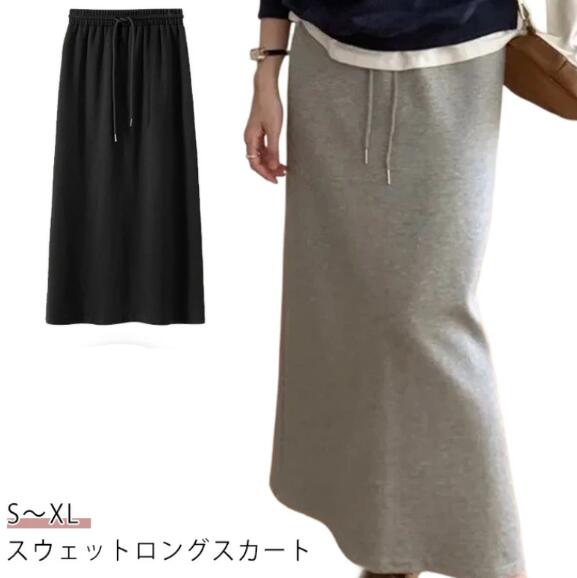 可愛い スウェットスカート マキシ丈 ボトムス スカート 人気 グレー ブラック S M L XL
