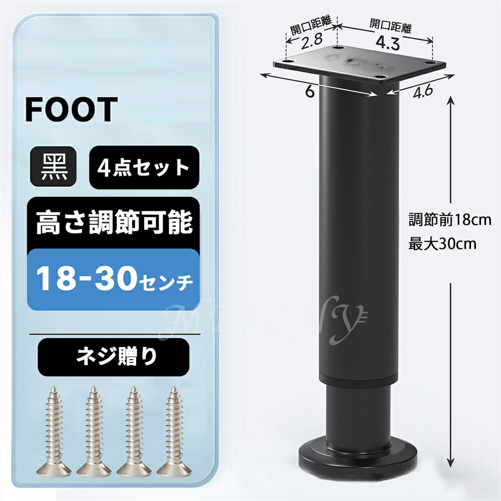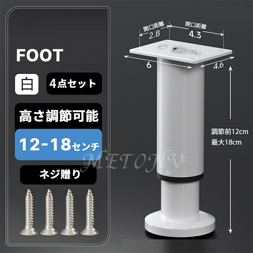 テーブル 脚 足 取り替え 継足 パー ブラック ホワイト 8センチ【8-12cm】 12センチ【12-18cm】 18センチ【18-30cm】 25センチ【25-42cm】 42センチ【42-72cm】 72センチ【72-110cm】
