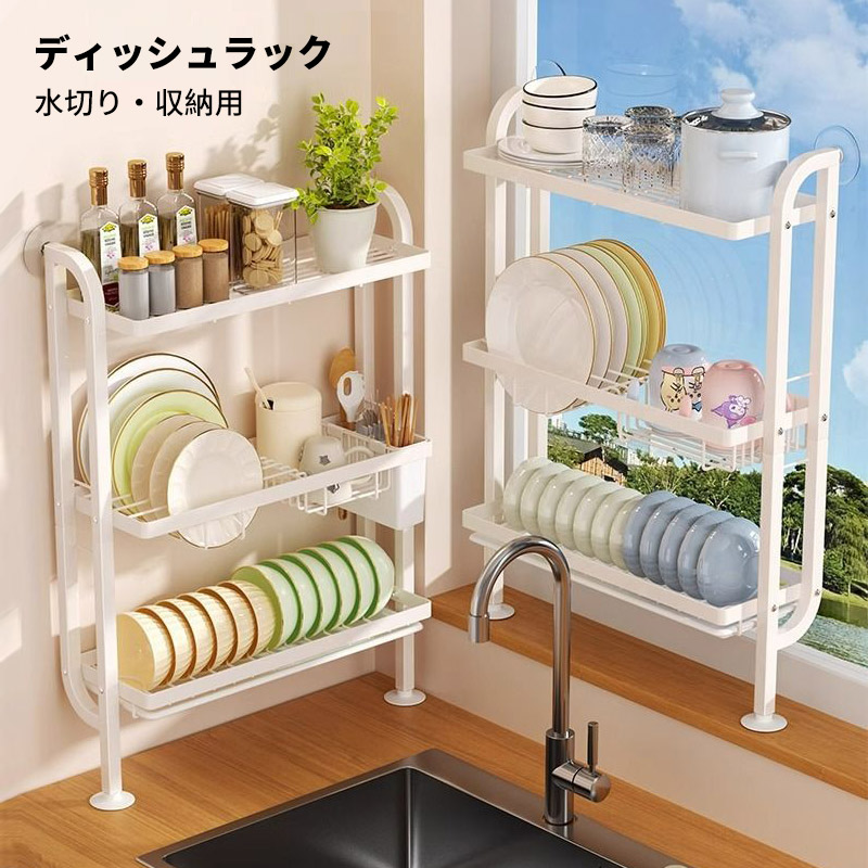 3段式 2段式 水切りラック 水切りか キッチン用品 食器 調理器具 続々登場 ブラック ホワイト 2段タイプ 3段タイプ