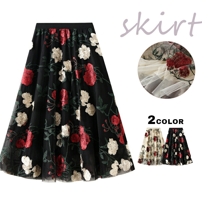ロング チュールスカート ミモレ スカ レディースファッション 通販 ブラック ベージュ
