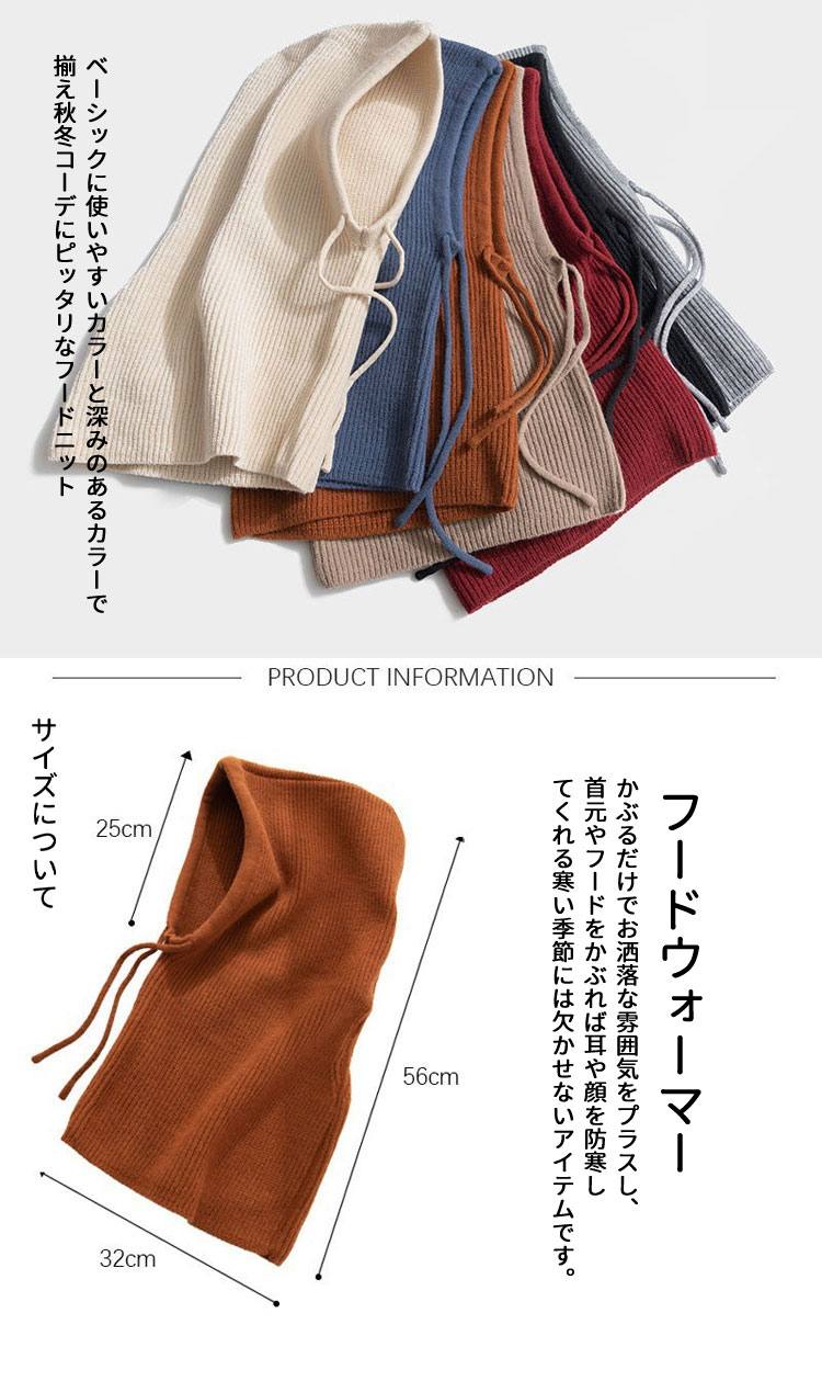 フードウォーマー 防寒 ニット フード バッグ 小物 ブランド雑貨 新登場! ブラック ベージュ ブラウン カーキ ブルー グレー ワイン