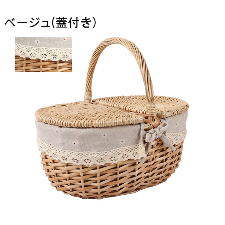 ピクニック バスケット かご かごバッ レッド(蓋付き) レッド(蓋なし) ベージュ(蓋付き) ベージュ(蓋なし) S M L
