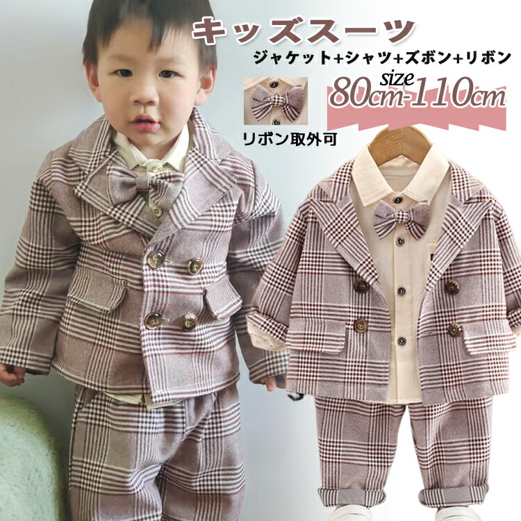 子供服 フォーマルスーツ 男の子 4点 キッズ スーツ カジュアルセットアップ スーツ 豊富 80# 90# 100# 110#
