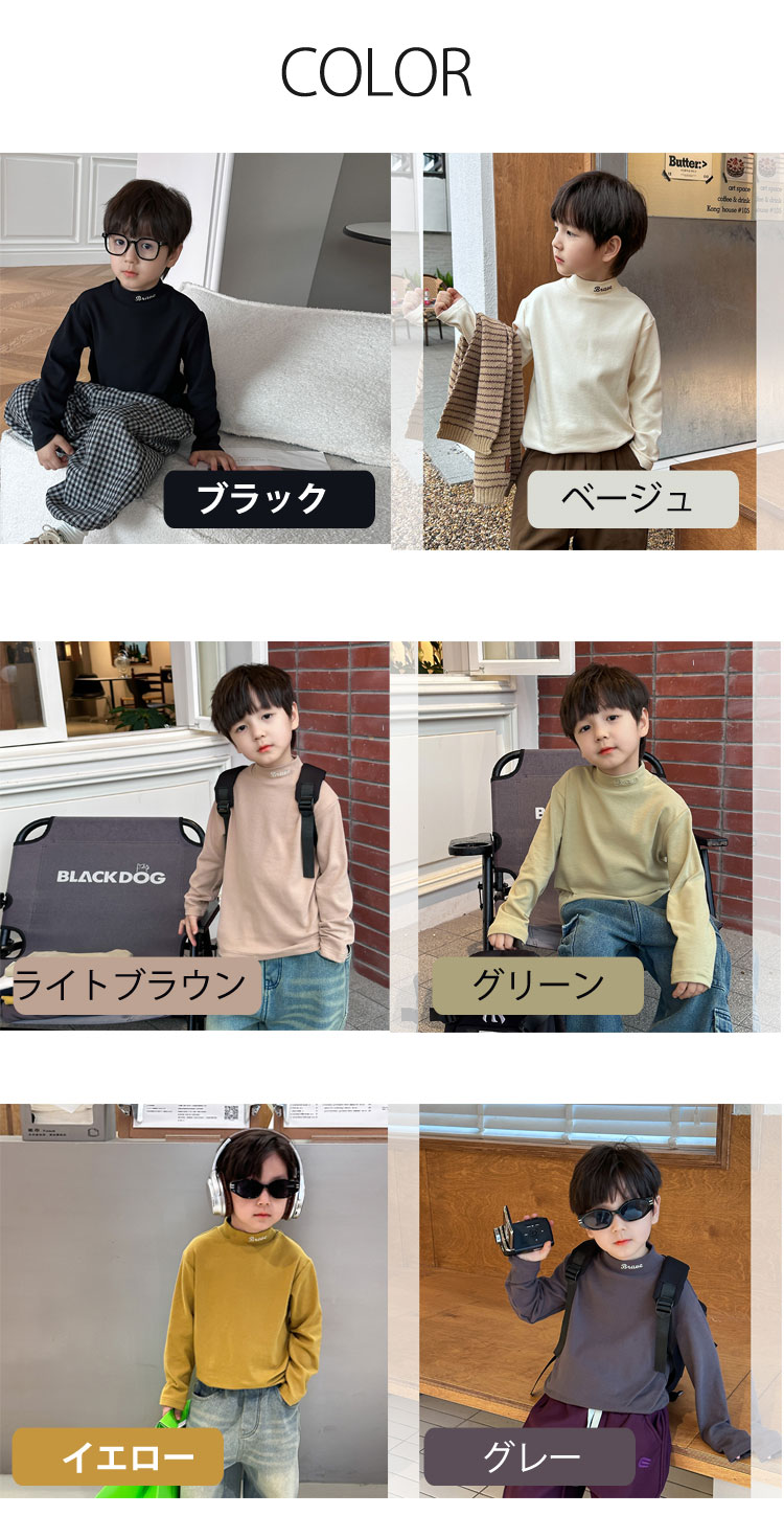 ベビー シャツ 男の子 女の子 インナ キッズ ベビー マタニティ 人気 ブラック ベージュ ライトブラウン グリーン イエロー グレー 90cm 100cm 110cm 120cm 130cm 140cm 150cm 160cm