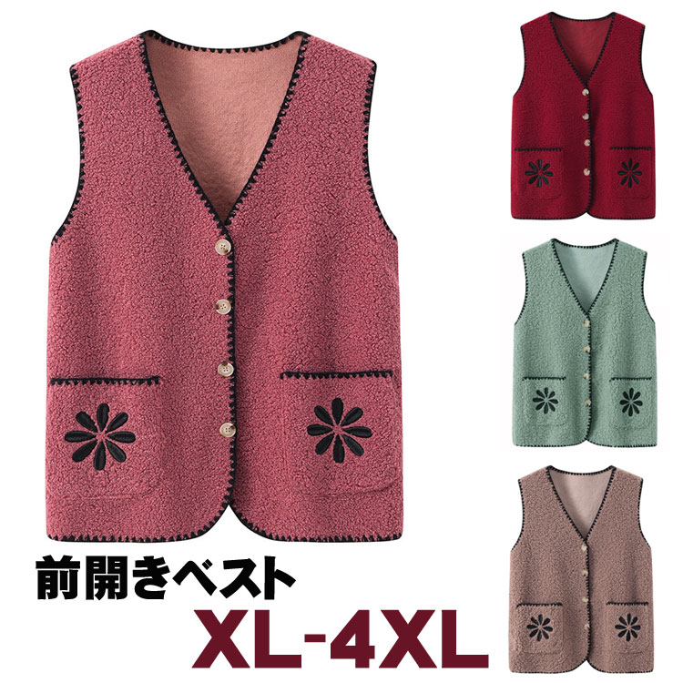 前開きベスト レディース 60代 70 トップス ベスト 豊富な品揃え ワイン ライトグリーン ピンク カーキ XL 2XL 3XL 4XL