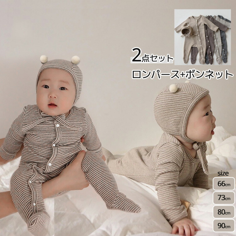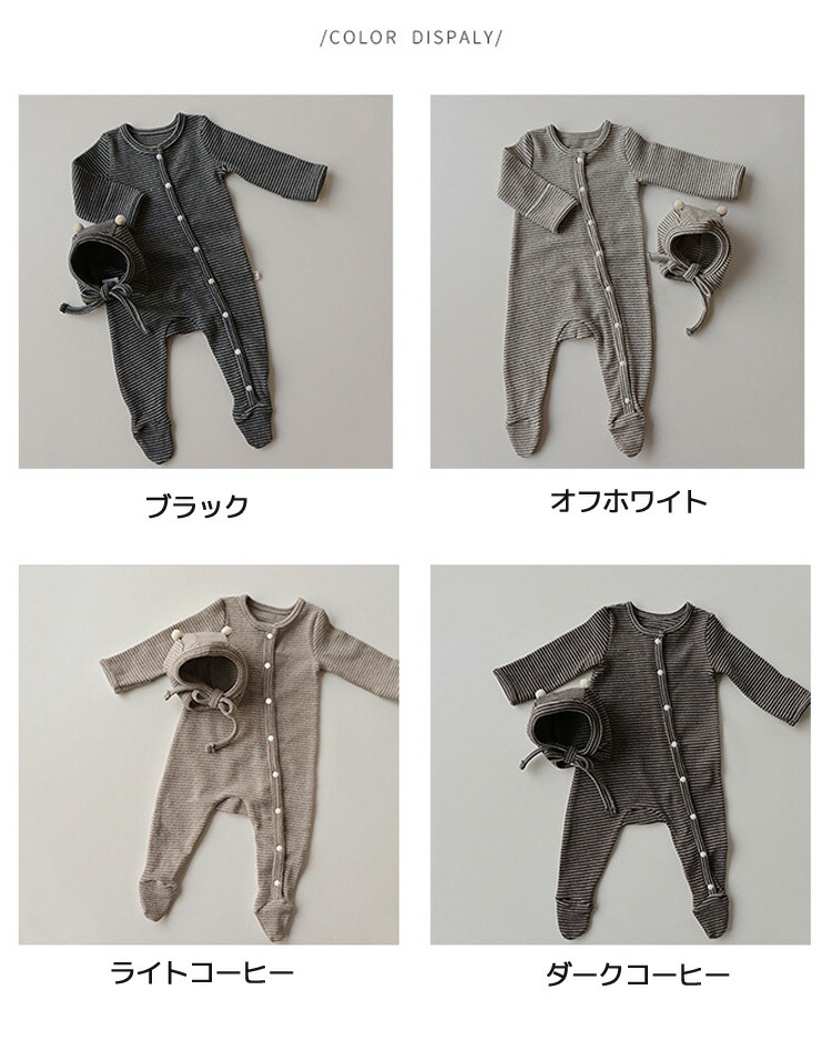 2点セット ベビー ロンパース 長袖 キッズ ベビー マタニティ 通販 ブラック オフホワイト ライトコーヒー ダークコーヒー 66cm 73cm 80cm 90cm