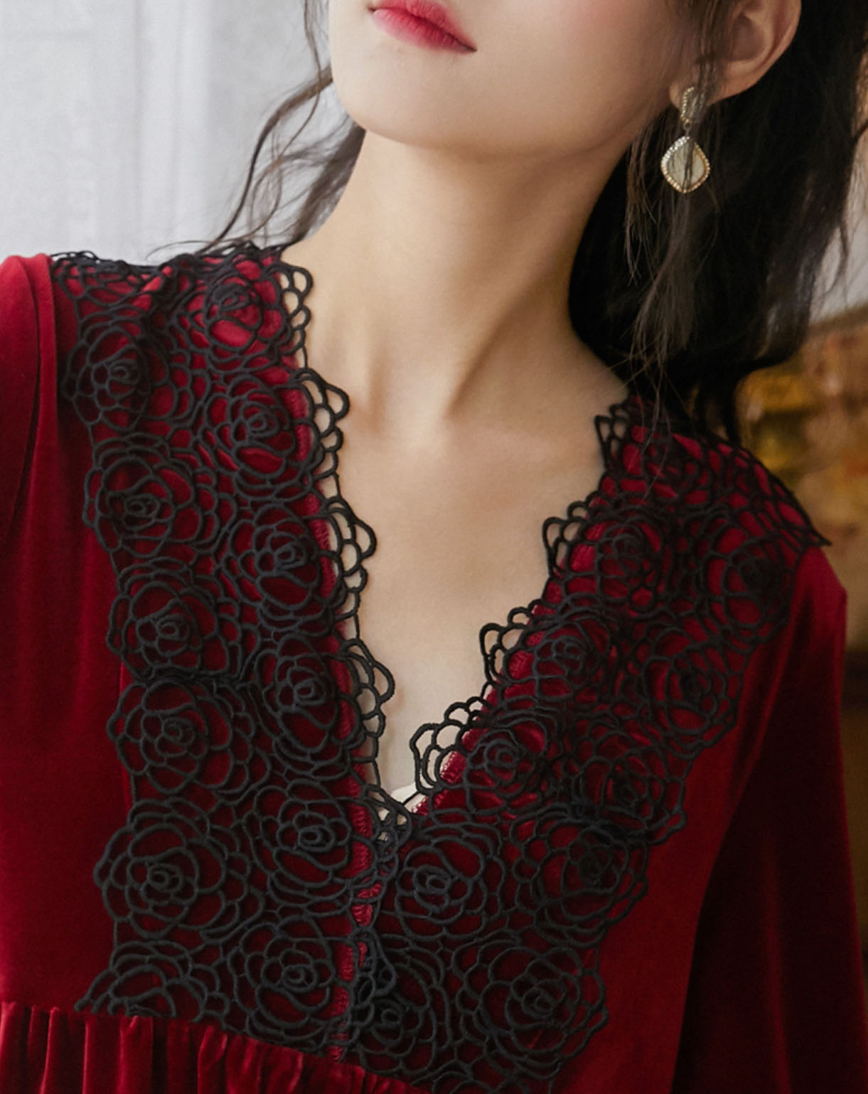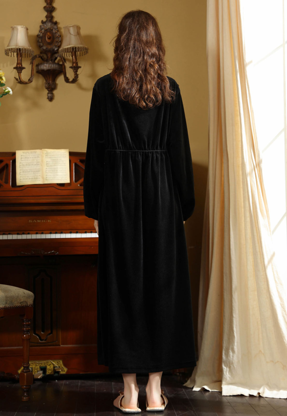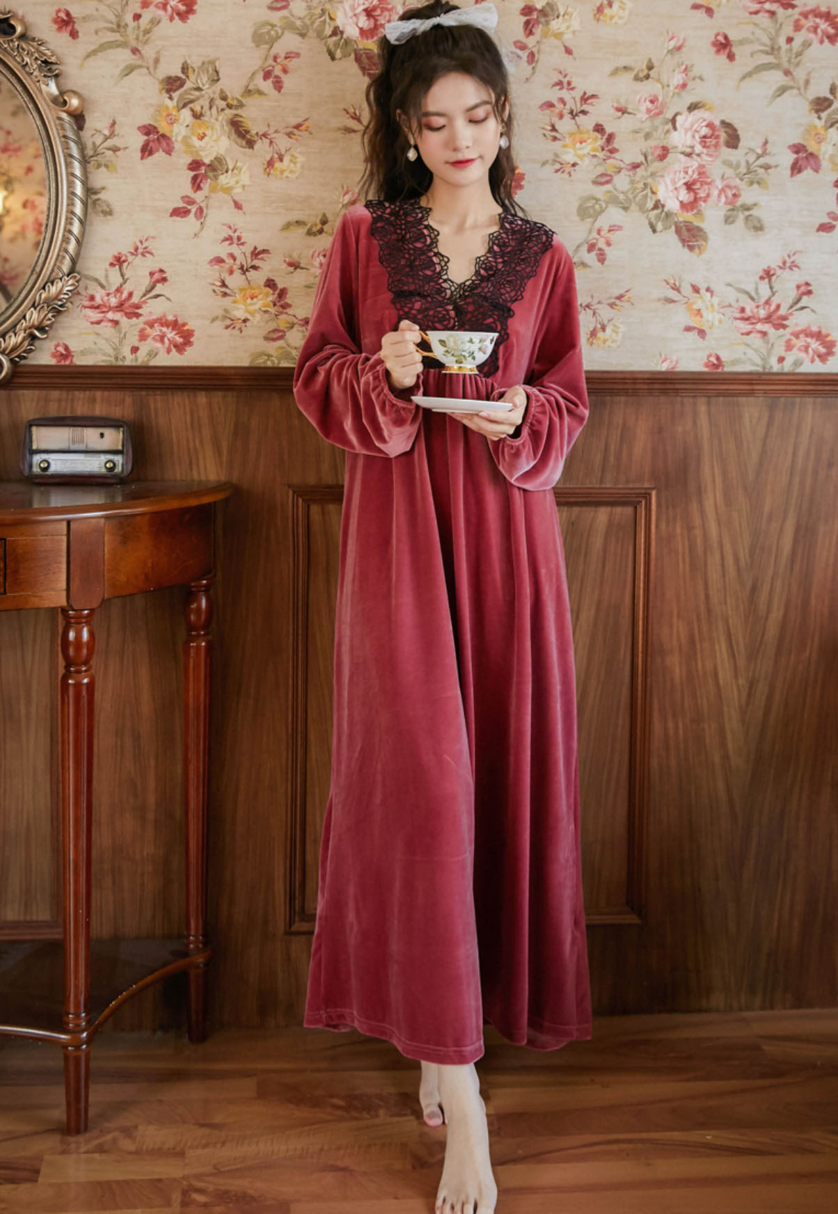 秋冬向け ネグリジェ レディース 長袖 レディース ナイトウェア ルームウェア ネグリジェ 早い者勝ち ブラック ワインレッド ダークピンク ダークグリーン M L XL