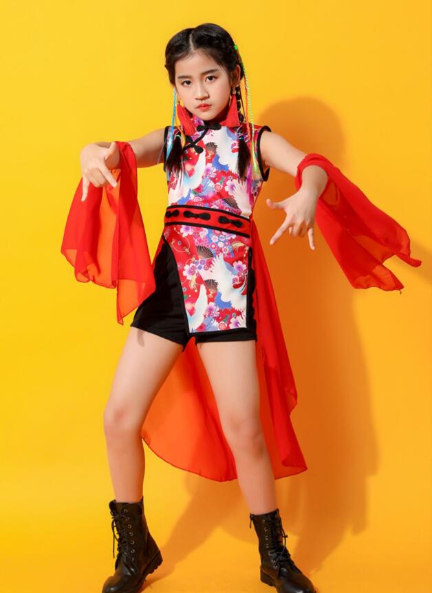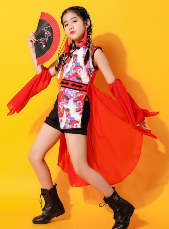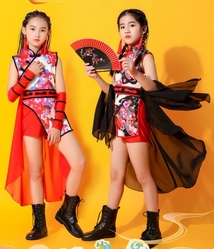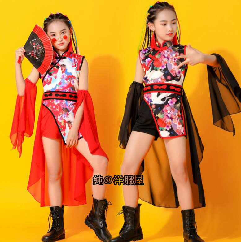 子供 中華 ダンス 衣装 4点セット キッズ ワンピース 早い者勝ち 黒衣装(黒パンツ) 黒衣装(赤パンツ) 赤衣装(黒パンツ) 赤衣装(赤パンツ) 110cm 120cm 130cm 140cm 150cm 160cm 170cm