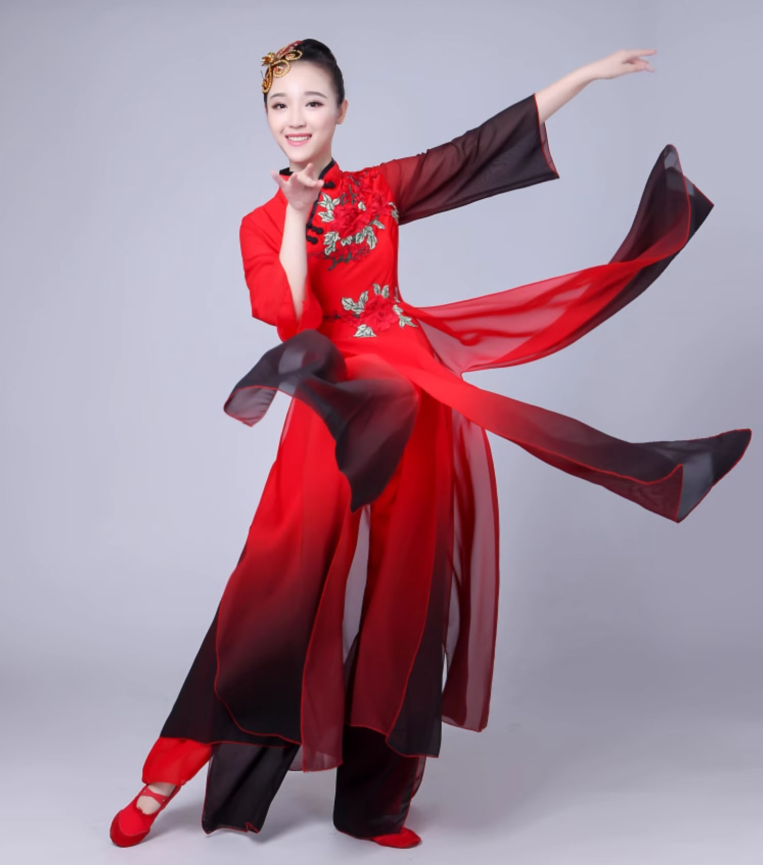 中華古典舞踊ダンス衣装 レディース チ スポーツ アウトドア 特集 赤 赤+黒 S M L XL 2XL 3XL