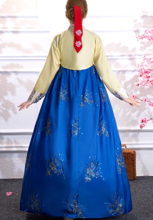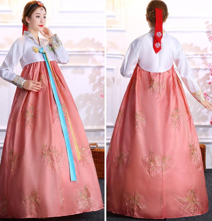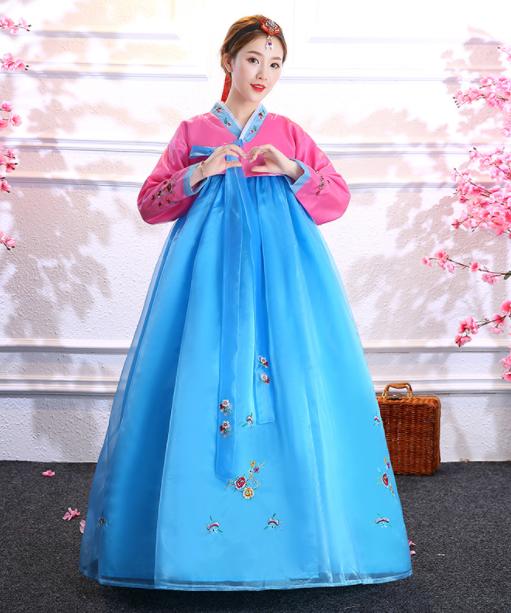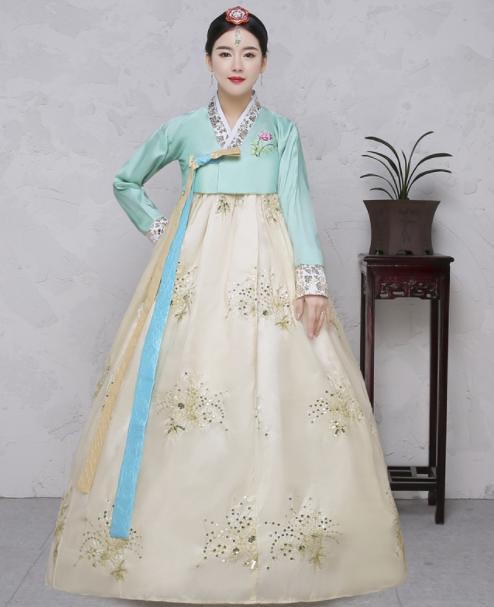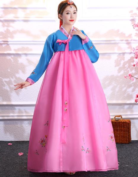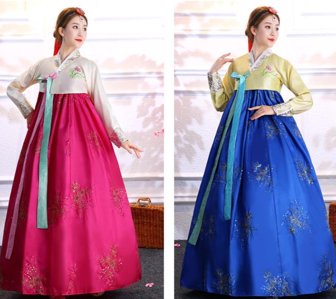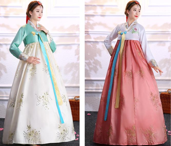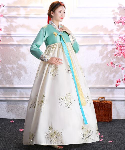 韓服 チマチョゴリ 韓国民族衣裳 舞台 ドレス 新登場! S M L XL ベージュ+ローズ イエロー+ブルー 緑+ベージュ 白+オレンジ ピンク+青(小花柄) 青+ピンク(小花柄)