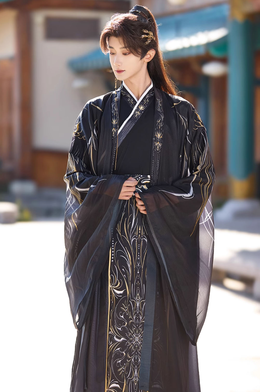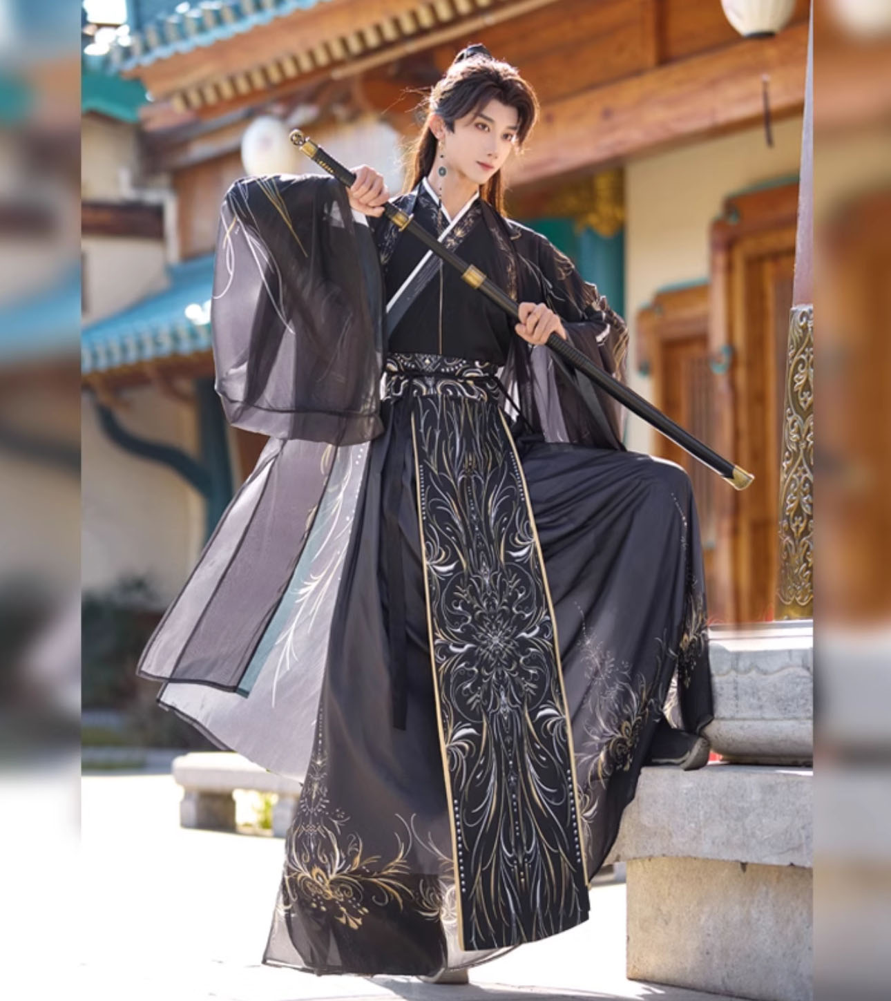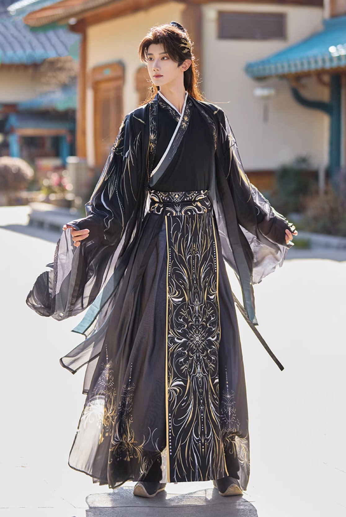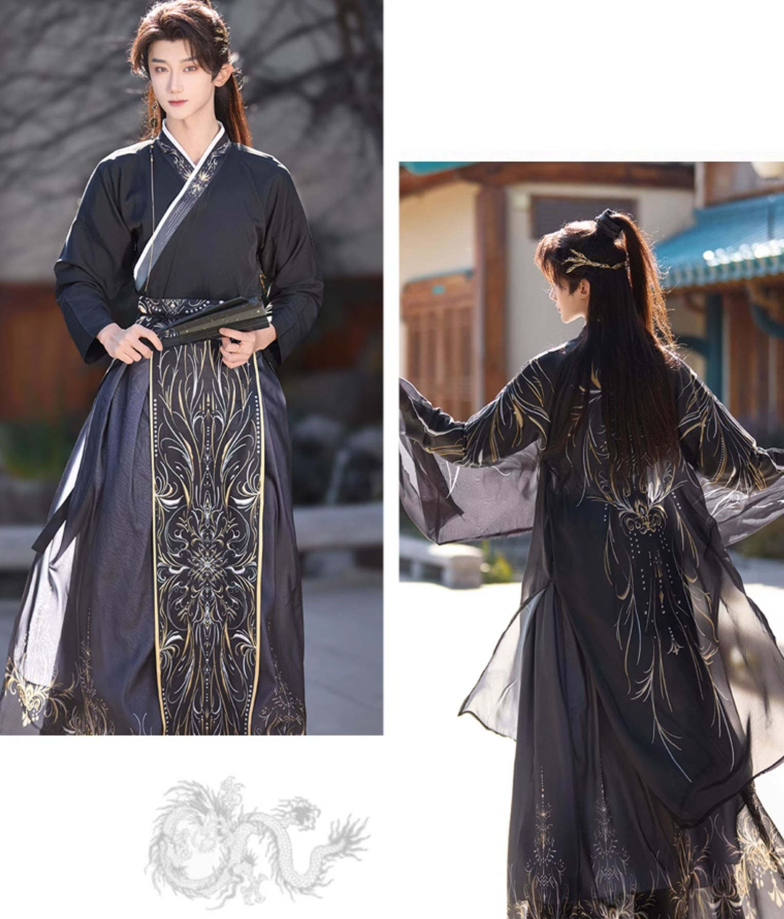 メンズ 漢服 黒 白 広袖羽織カバー付 コスプレ 変装 仮装 コスチューム一式 続々登場 S M L XL 2XL 3XL 黒 白