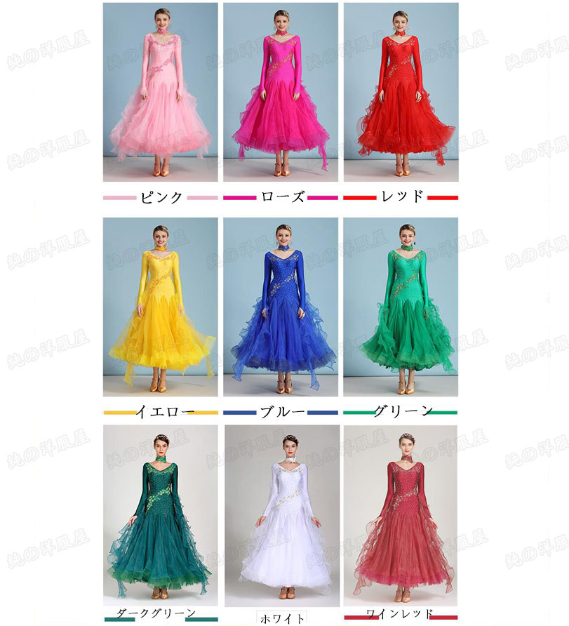 モダンドレス 社交ダンス スタンダード 体操 ダンス 社交ダンス ウェア 特集 S M L XL 2XL ピンク ローズ レッド イエロー ロイヤルブルー グリーン ダークグリーン ホワイト ワインレッド ライトブルー