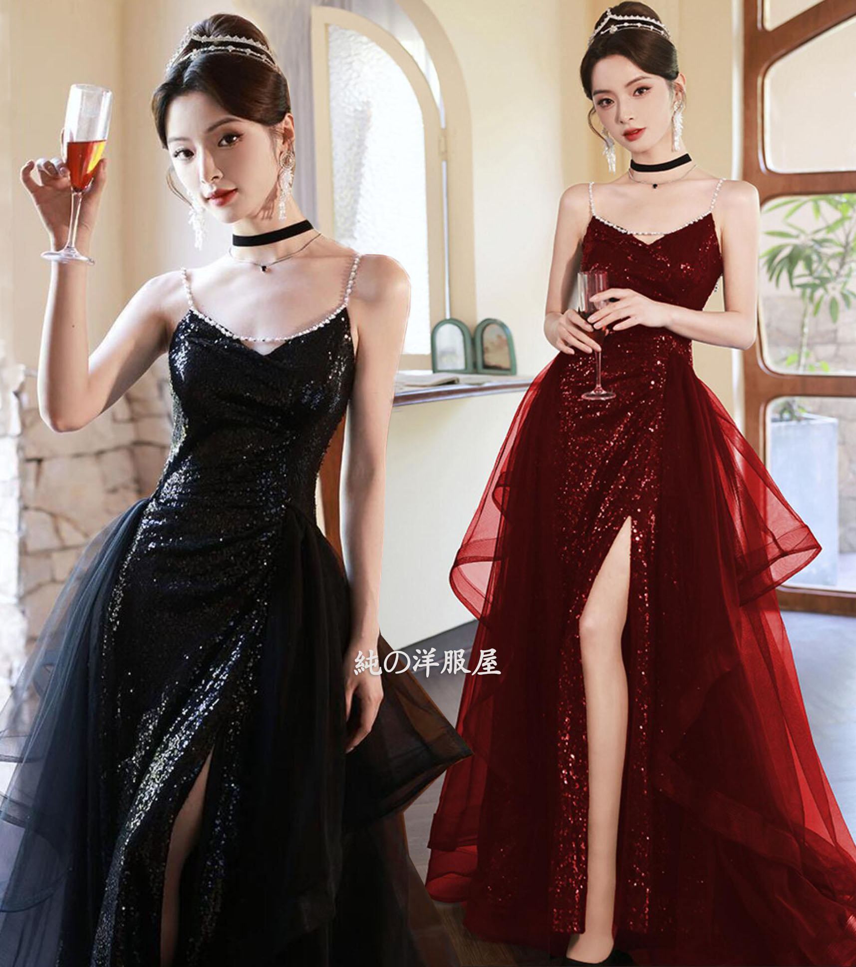 パーティードレス ロングドレス スパン ドレス 超目玉商品 ブラック ワインレッド XS S M L XL 2XL 3XL
