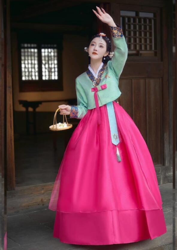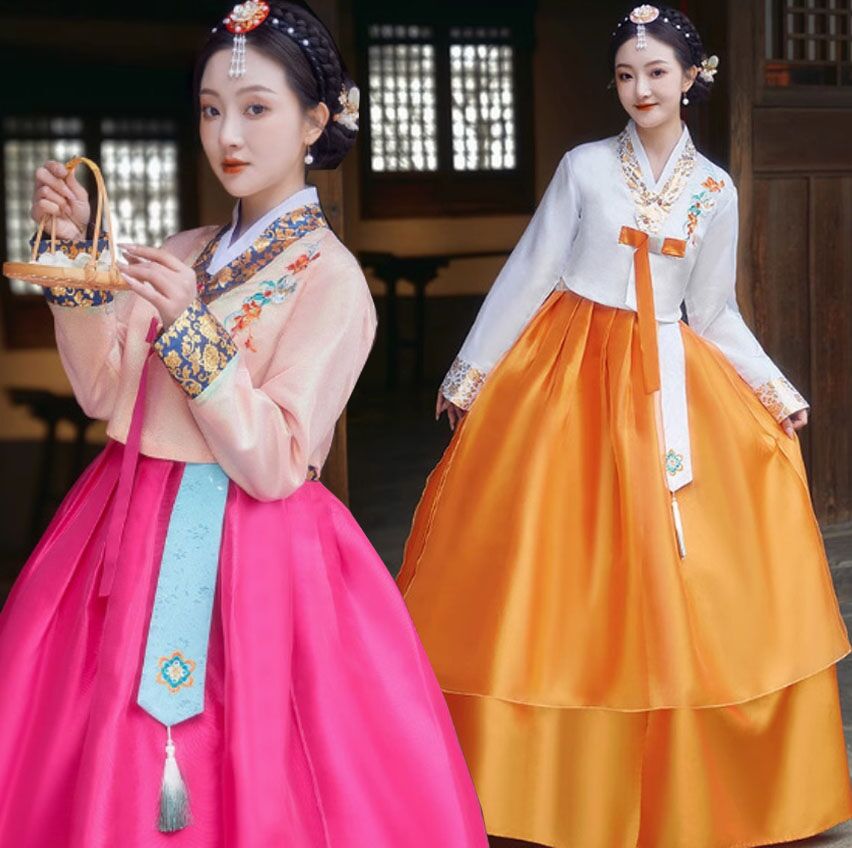 チマチョゴリ 韓国風ウエディングドレス レディースファッション 新登場! S M L XL 2XL 3XL 上ピンク下ローズ 上水色下オレンジ 上緑下ローズ 上白下オレンジ