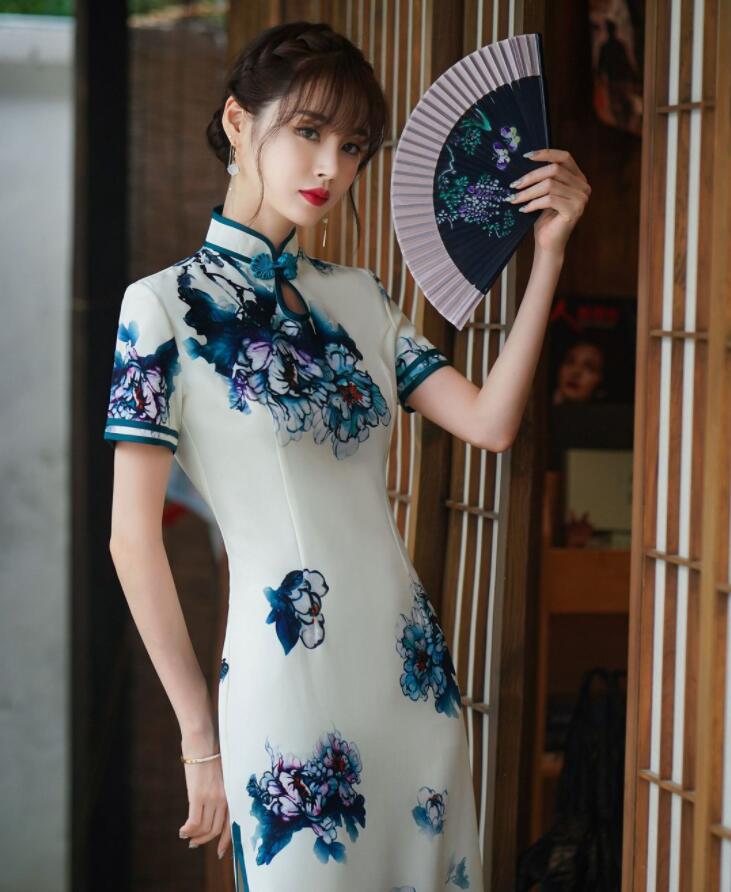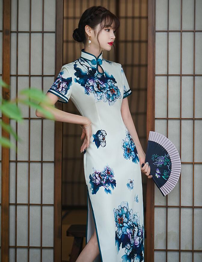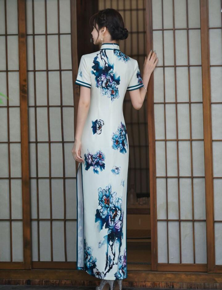 ロングチャイナドレス 半袖 ロング丈 レディースファッション 超目玉商品 M L XL 2XL 3XL 4XL