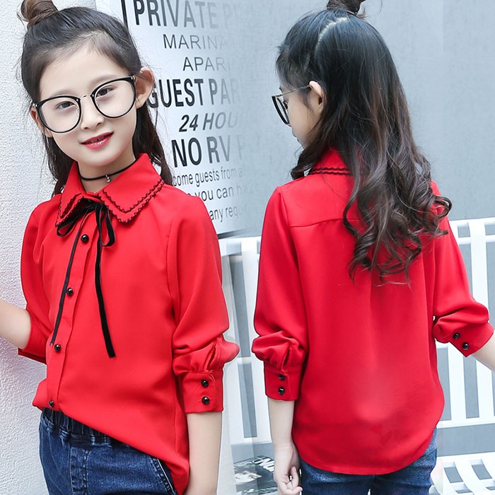 ブラウス 女の子 シャツ おしゃれ リ キッズ ベビー マタニティ 新作 ホワイト レッド 110cm 120cm 130cm 140cm 150cm 160cm 170cm