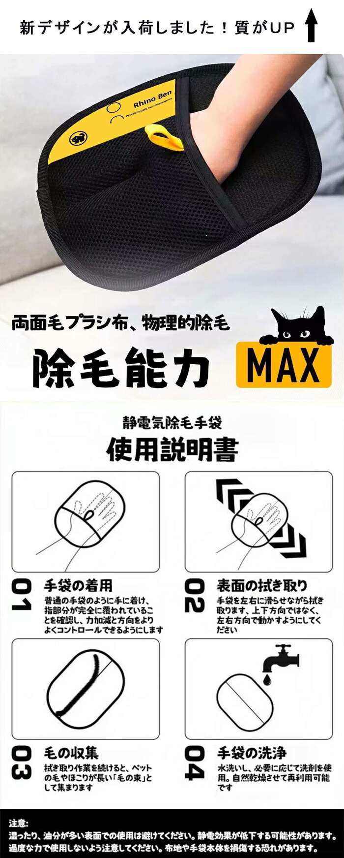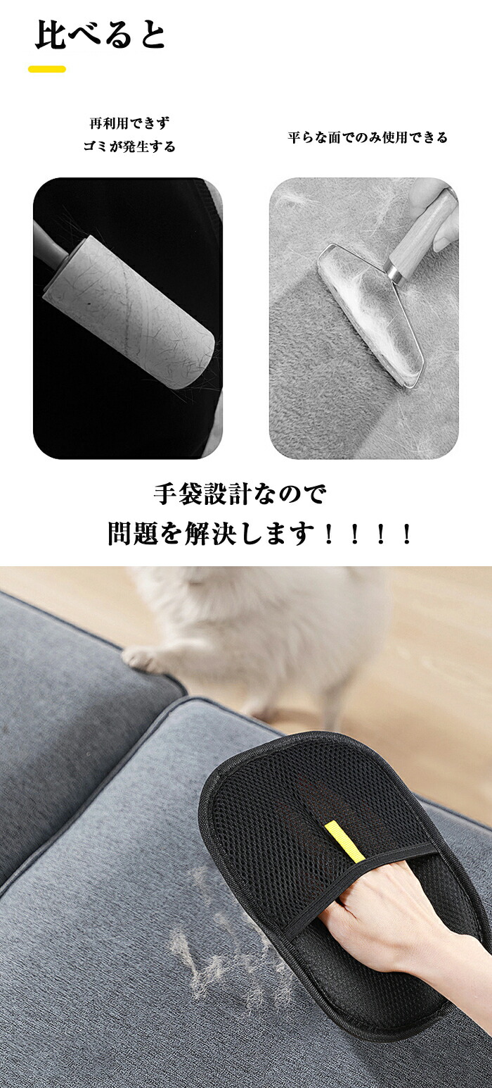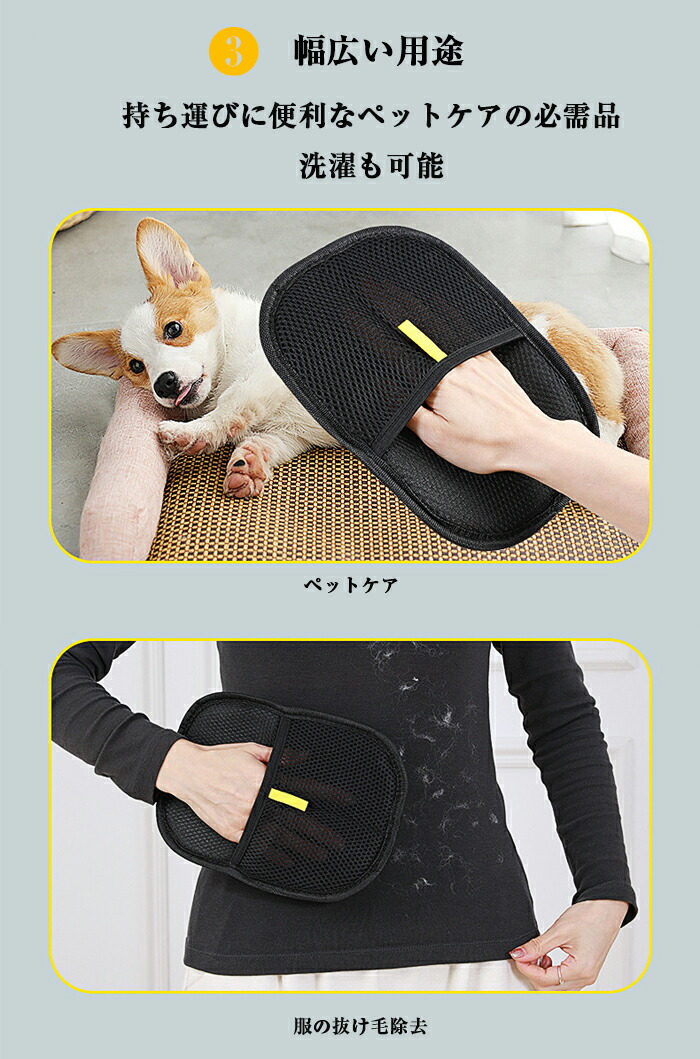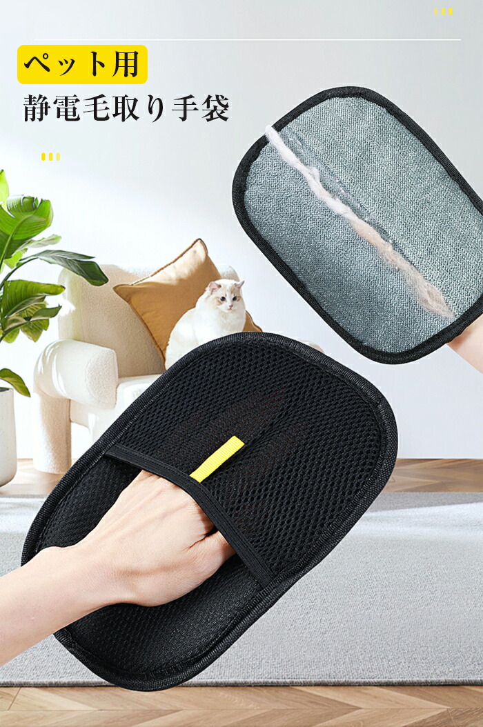 ペット用静電気除去手袋 抜け毛グローブ ブラック ブラック&イエロー【新】 タイプ02【可愛い目付き】 2枚セット【おすすめ】 1枚セット