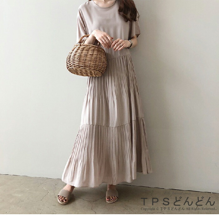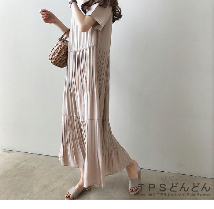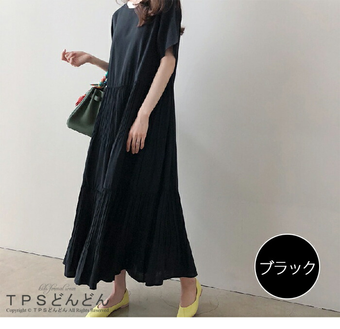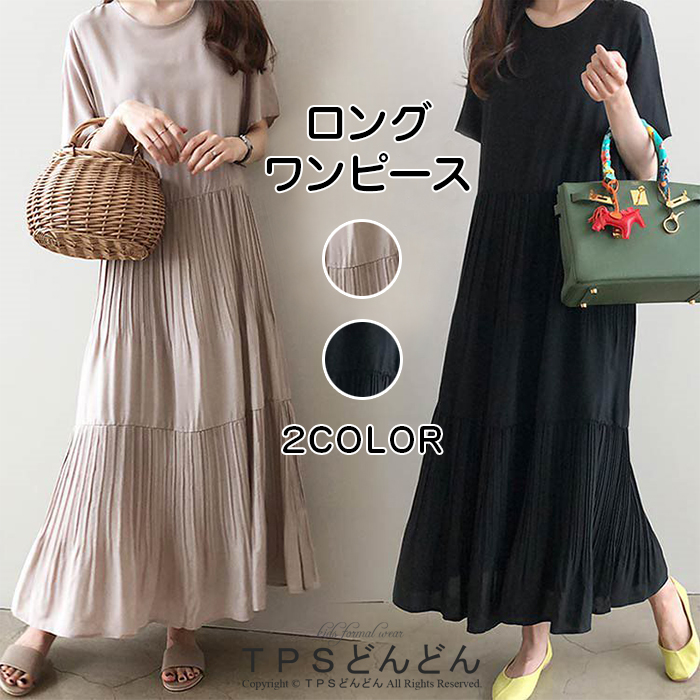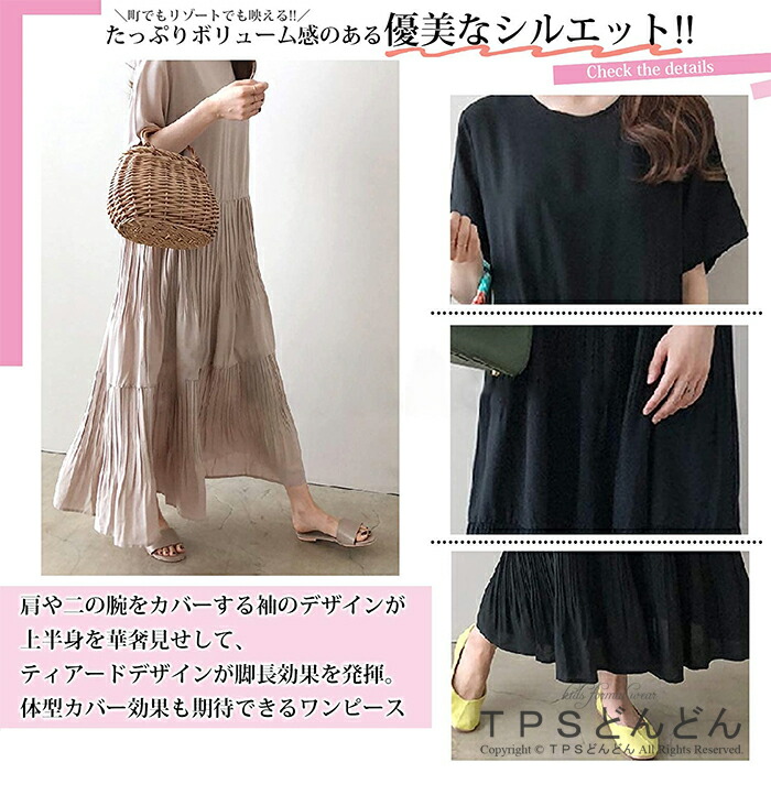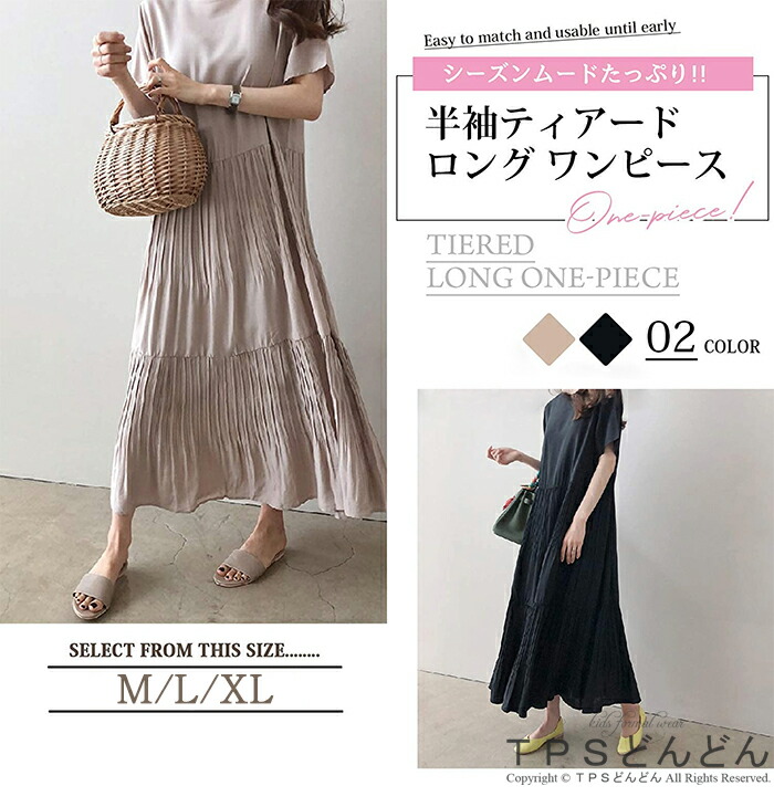 ロングワンピース 夏 半袖 ワンピース ワンピース 続々登場 ベージュ ブラック M L XL