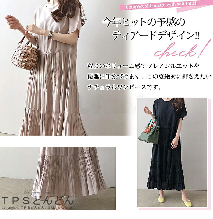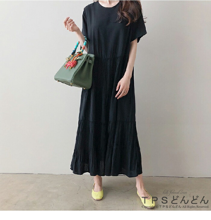 ロングワンピース 夏 半袖 ワンピース レディース ティアード Aライン マキシ ゆったり ナチュラル フレアシルエット 無地 体型カバー シンプル 上品 大人 通勤 パーティ 大きいサイズ 結 OL