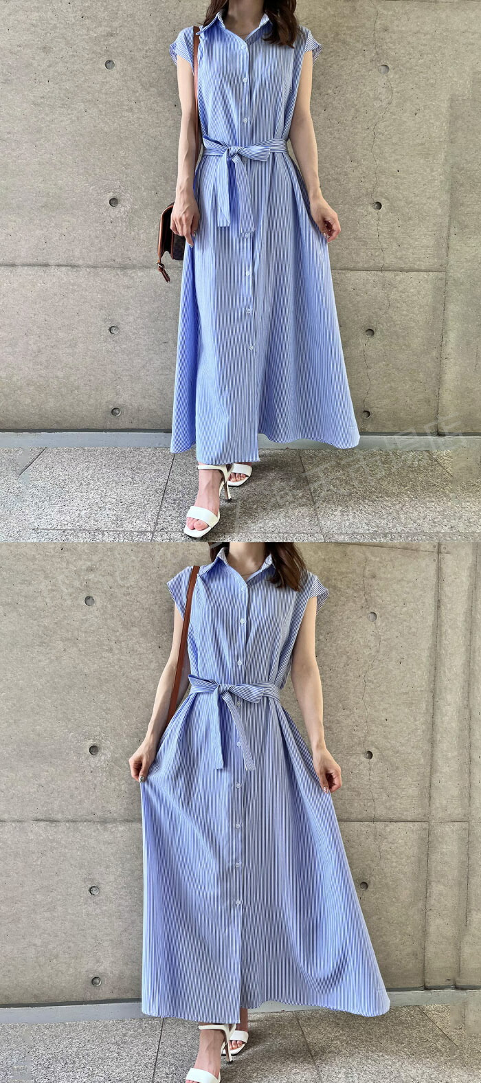 シャツワンピース ワンピース 夏 レデ ブルー ピンク ベージュ
