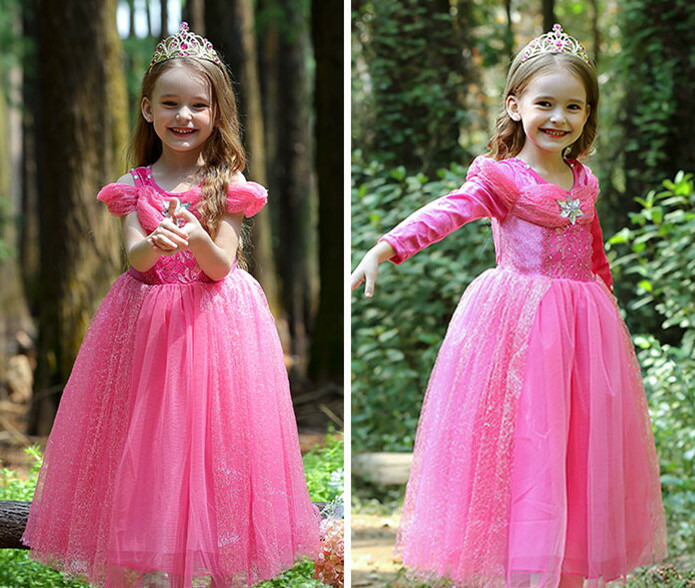 オーロラ姫 ドレス ロング ピンク 女 キッズ ベビー マタニティ 豊富 100 110 120 130 140 150 半袖 長袖