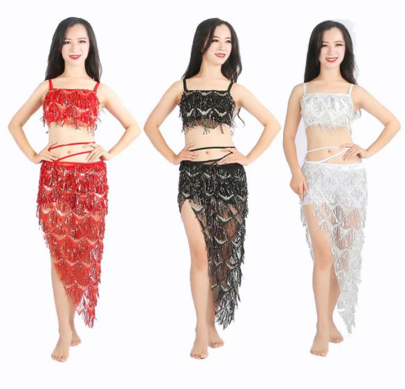 ベリーダンス衣装 上下セット 2点セッ 体操 ダンス ベリーダンス 衣装セット 特集 S M L ブラック レッド ホワイト