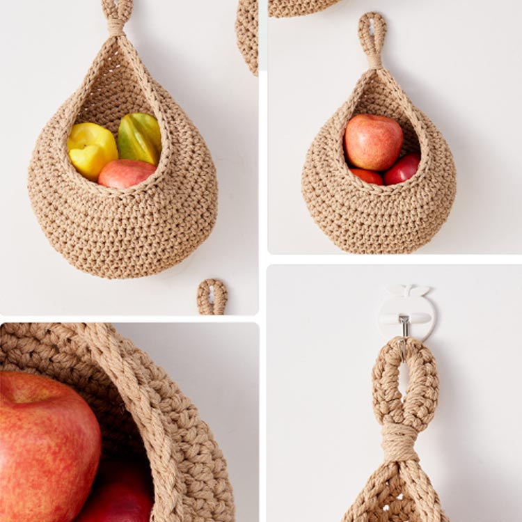 吊り下げバスケット キッチン収納かご キッチン用 収納バスケット キッチン バスケット 吊り下げ式 フルーツバスケット ロープバスケット 壁掛け用 ティアドロップ型 キッチン収納 飾り物 野菜の保管