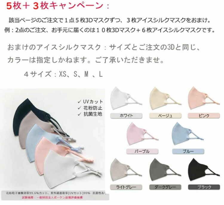 超息楽3Dマスク 5枚入洗えるマスク 冬用L(男性、大きな顔、面長) 冬用S(8歳以上、小顔、面短) 冬用XS(8歳以下、超小顔) 夏用L(男性、大きな顔、面長) 夏用S(8歳以上、小顔、面短) 夏用XS(8歳以下、超小顔) 冬用M(女性、中高生、普通) 夏用M(女性、中高生、普通) ライトグレー5枚 (耳紐無地) ホワイト5枚 (耳紐無地) ブルー5枚(耳紐無地) ダークグレー5枚(耳紐無地) ブラック5枚(耳紐無地) ピンク5枚(耳紐無地) ベージュ5枚(耳紐無地) 迷彩-白茶緑系5枚(耳紐印字) 迷彩-白黒灰系5枚(耳紐印字) ブルー5枚(耳紐印字) ライトグレー5枚(耳紐印字) ダークグレー5枚(耳紐印字) ホワイト5枚(耳紐印字) ブラック5枚(耳紐印字) ピンク5枚(耳紐印字) ベージュ5枚(耳紐印字)