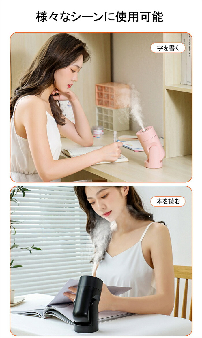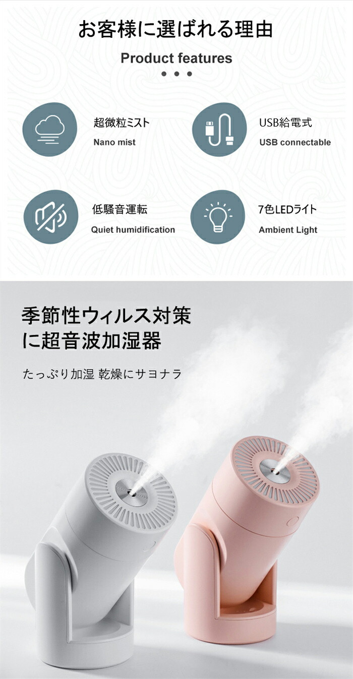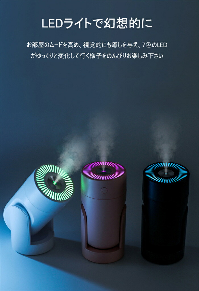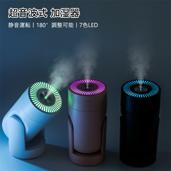卓上 超音波式 加湿器 軽量 小型 USB給電式 アロマ 除菌 卓上加湿器 アロマ対応 長時間連続加湿 角度調整 おしゃれ 7色LED付き 持ち運び便利 空気浄化機 コンパクト お手入れ 空焚き防止
