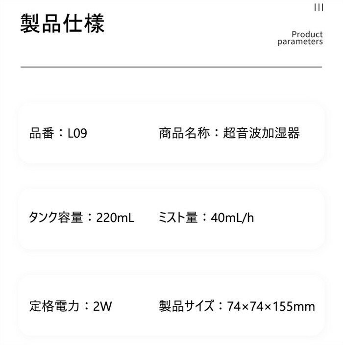 卓上 超音波式 加湿器 軽量 小型 U ピンク ホワイト ブラック