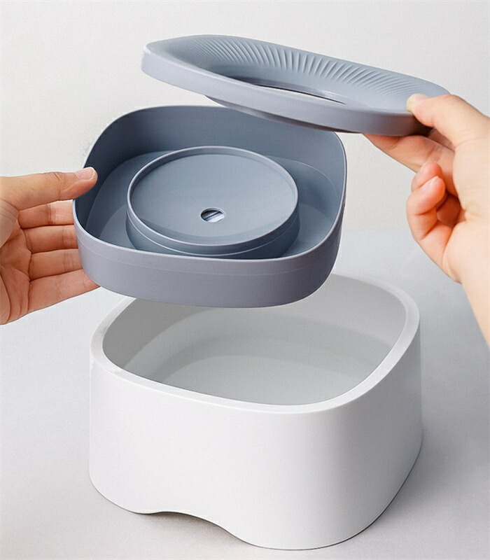 【浮力設計&低速給水器】自然浮力構造を利用し、水の出る量が自由調整できる内蓋を設計されていました。ペットの舌が浮き蓋に触れると、かかる圧力に応じて中心部から水が自動的に流れ出します。浮き蓋の穴は、ペットが水を飲むスピードを減速させる機能があり、飲み込むことによる窒息や嘔吐を防ぎます。