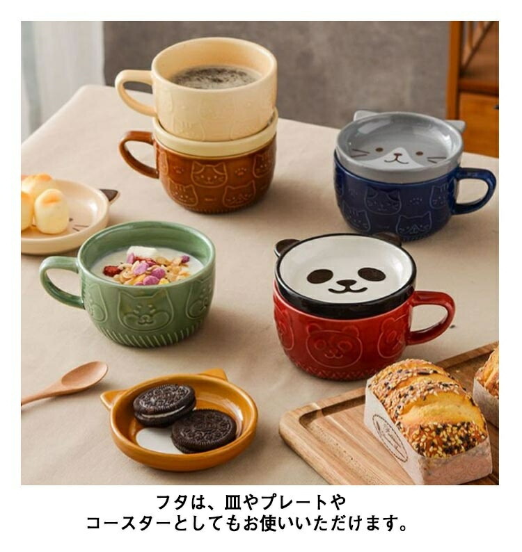マグカップ フタ付き 300ml 食器 キッチン用品 食器 調理器具 豊富 柴犬 猫1 パンダ 猫2 猫3