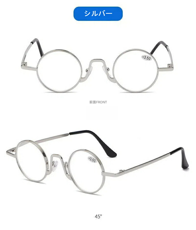 男女兼用 丸縁の老眼鏡 円枠 レトロな バッグ 小物 ブランド雑貨 通販 ブラック ゴールド シルバー +1.00 +1.50 +2.00 +2.50 +3.00 +3.50 +4.00