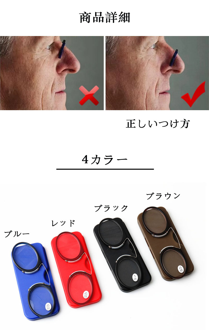 老眼鏡 鼻掛け ノーズクリップ 鼻メガ バッグ 小物 ブランド雑貨 特集 ブラック レッド ブルー ブラウン +1.0 +1.5 +2.0 +2.5 +3.0 +3.5
