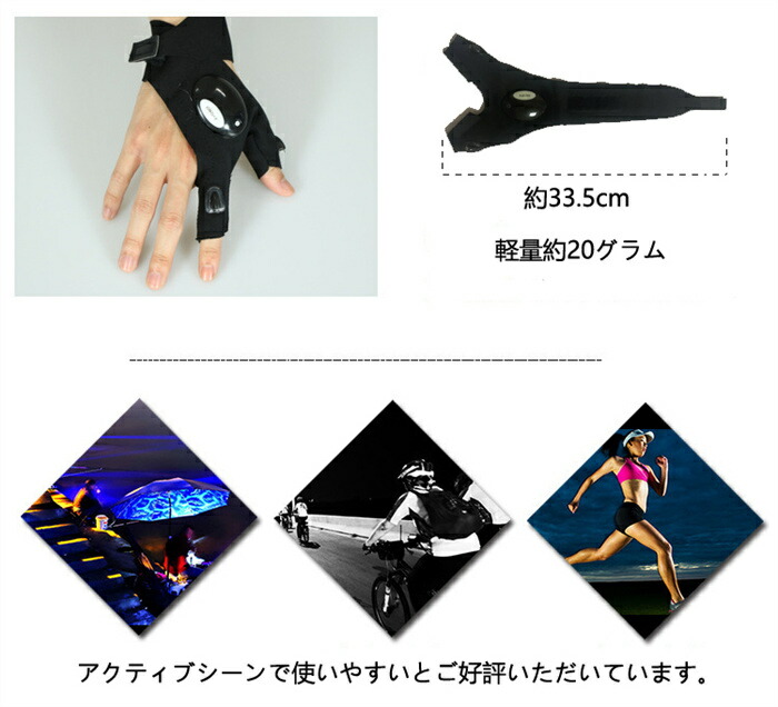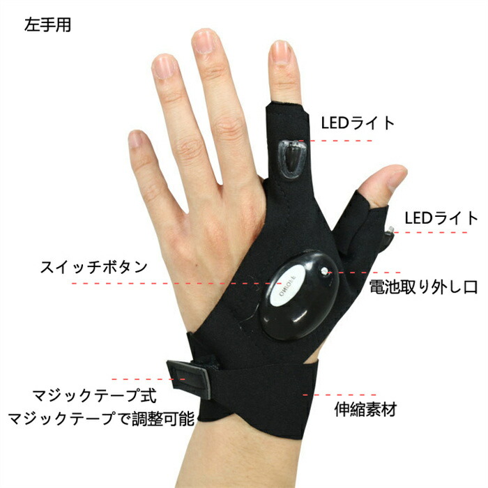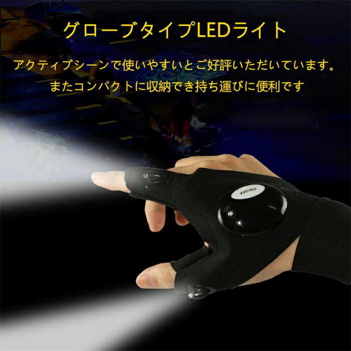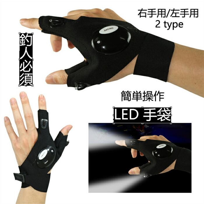 ライトグローブ 釣りグローブ 手元だけ明るい手袋 夜釣り用 手袋 LED手袋 釣り手袋 釣り用品 穴あき LED アウトドア LED2灯 指なし