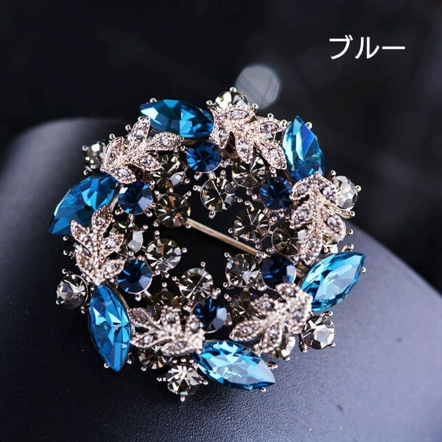 スワロフスキー リースラウンド ブロー レディースジュエリー アクセサリー ブローチ 通販 ピンク グリーン ブルー グリーン大きいサイズ ブルー大きいサイズ