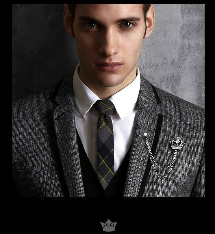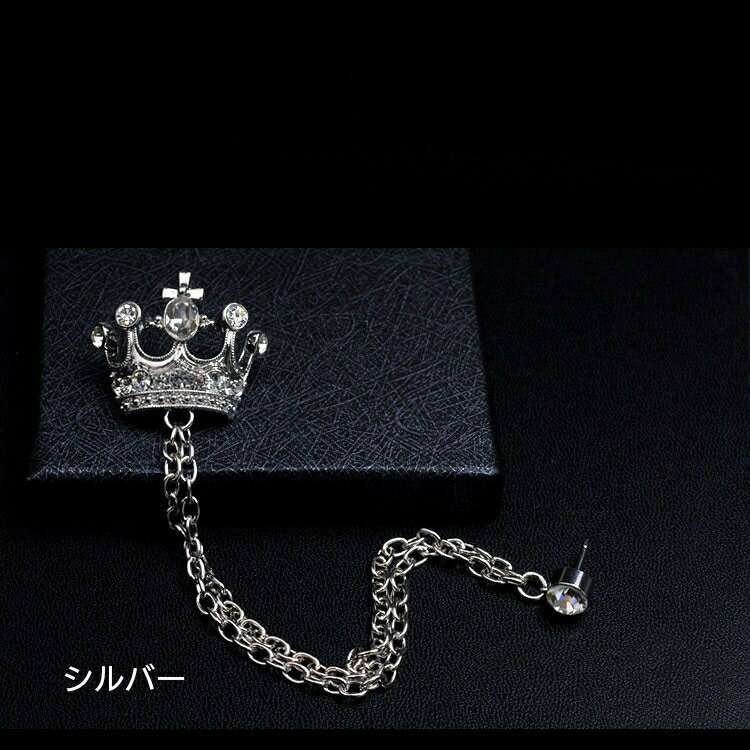 2カラー シルバー ゴールド 王冠 クラウン W チェーン 男女兼用ジュエリー アクセサリー メンズジュエリー ラペルピン