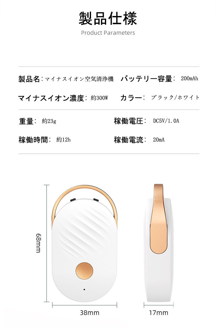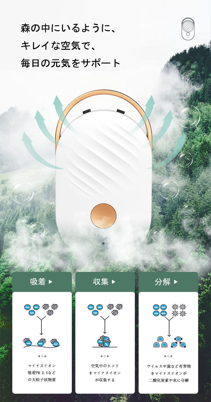 首かけタイプ 小型空気清浄器 ハンディ ブラック ホワイト