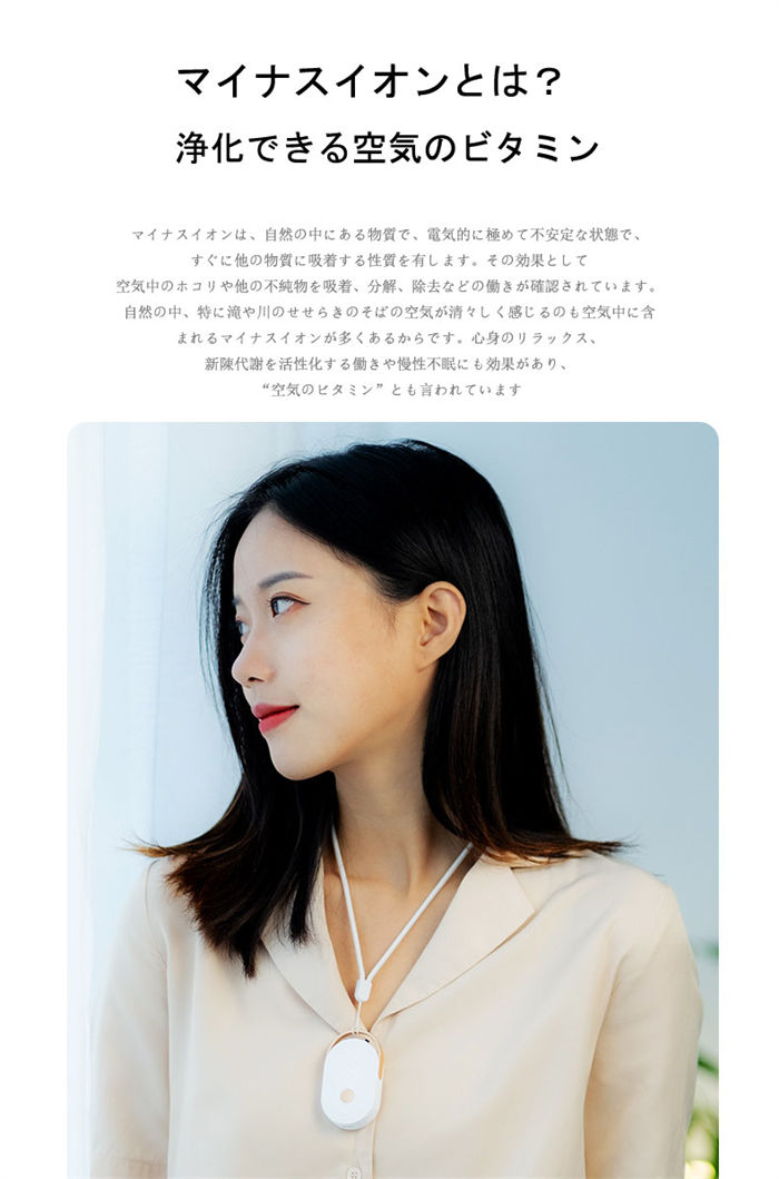 首かけタイプ 小型空気清浄器 ハンディー空気清浄機 自宅 会社 事務所 旅行 除菌 消臭 小型空気清浄機イオン発生器 マイナスイオン ミニサイズ コンパクト ポータブル 充電式 小型