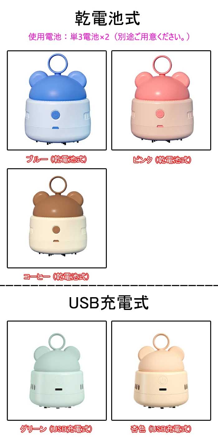 卓上クリーナー 卓上そうじ機 充電式 ブルー(乾電池式) ピンク(乾電池式) コーヒー(乾電池式) グリーン(USB充電式) 杏色(USB充電式)