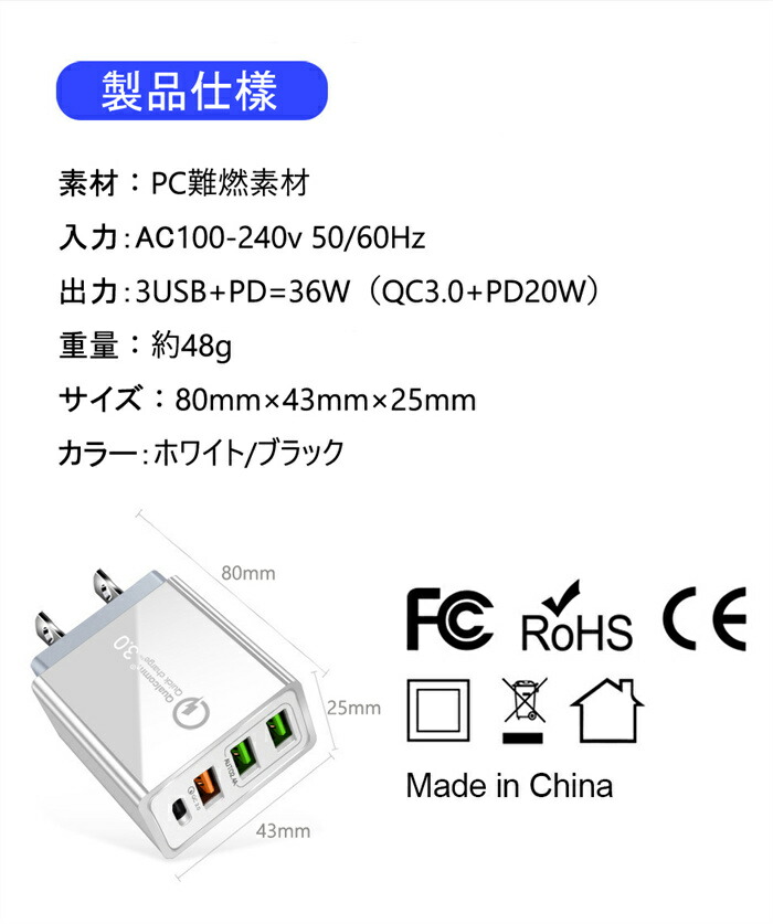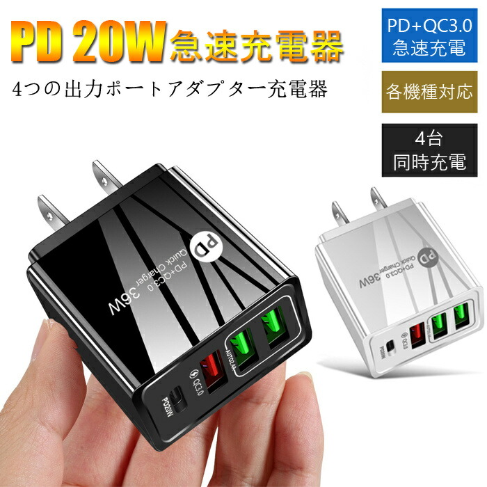 ACアダプター チャージャー PD20 スマートフォン タブレット用ケーブル 変換アダプター 早い者勝ち ホワイト ブラック 1点 2点セット
