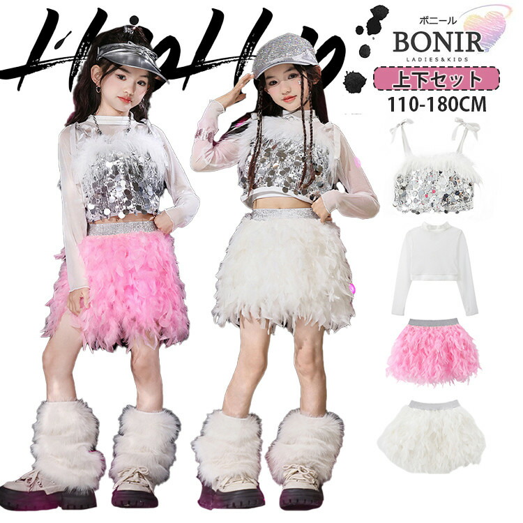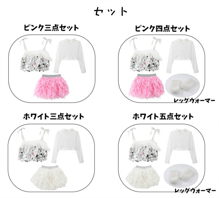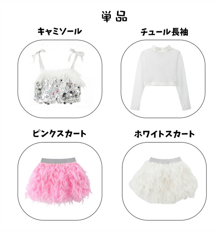 銀色 スパンコール キッズダンス hi キッズ ベビー マタニティ 続々登場 ピンク三点セット ピンク四点セット ホワイト三点セット ホワイト四点セット キャミソール チュール長袖 ピンクスカート ホワイトスカート 110 120 130 140 150 160 170 180