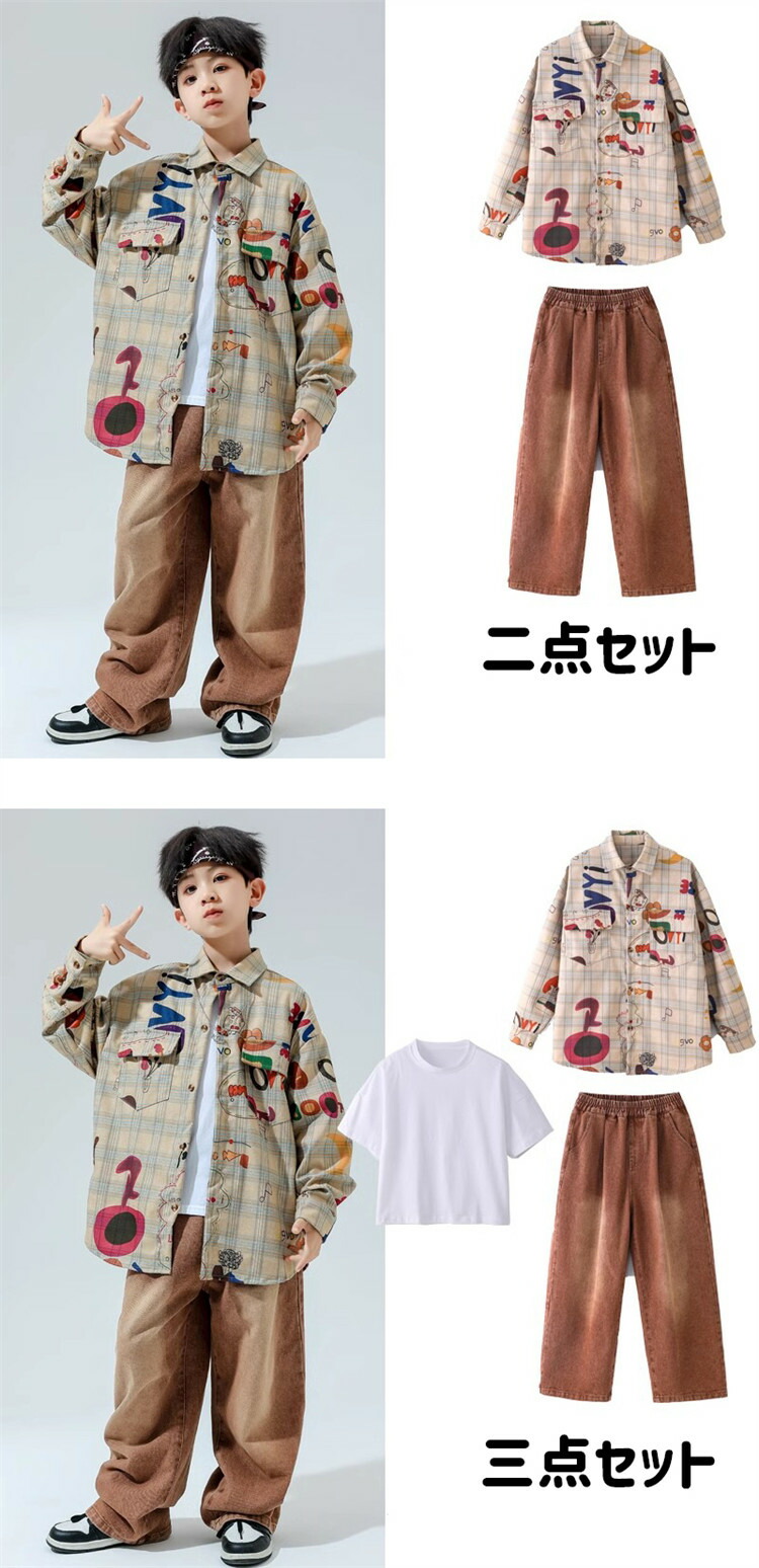 ベージュ キッズダンス ダンス衣装 ヒ キッズ ベビー マタニティ 早い者勝ち 二点セット 三点セット 柄シャツのみ 110 120 130 140 150 160 170 180