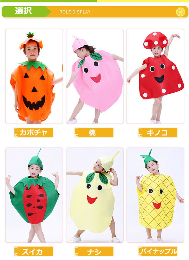 ハロウィン 子供用コスプレ 果物 イチ ホビー 新登場! カボチャ パイナップル トマト キノコ イチゴ ヒョウタン モモ スイカ ナシ