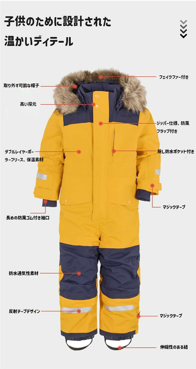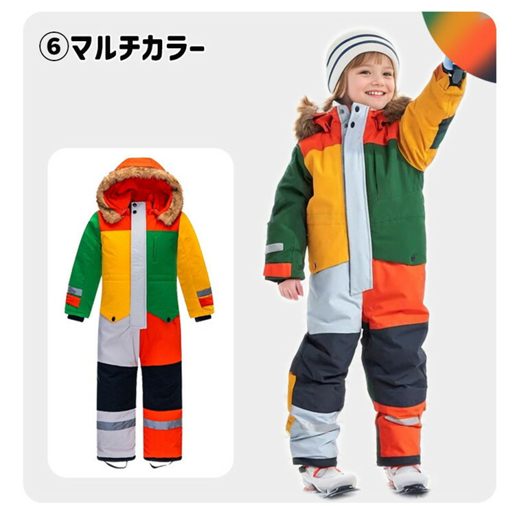 スキーウェア キッズ つなぎ ワンピー スポーツ アウトドア 新作 1ネイビー 2グリーン 3オレンジ 4イエロー 5ブルー 6マルチカラー 100 110 120 130 140 150 160