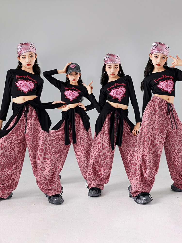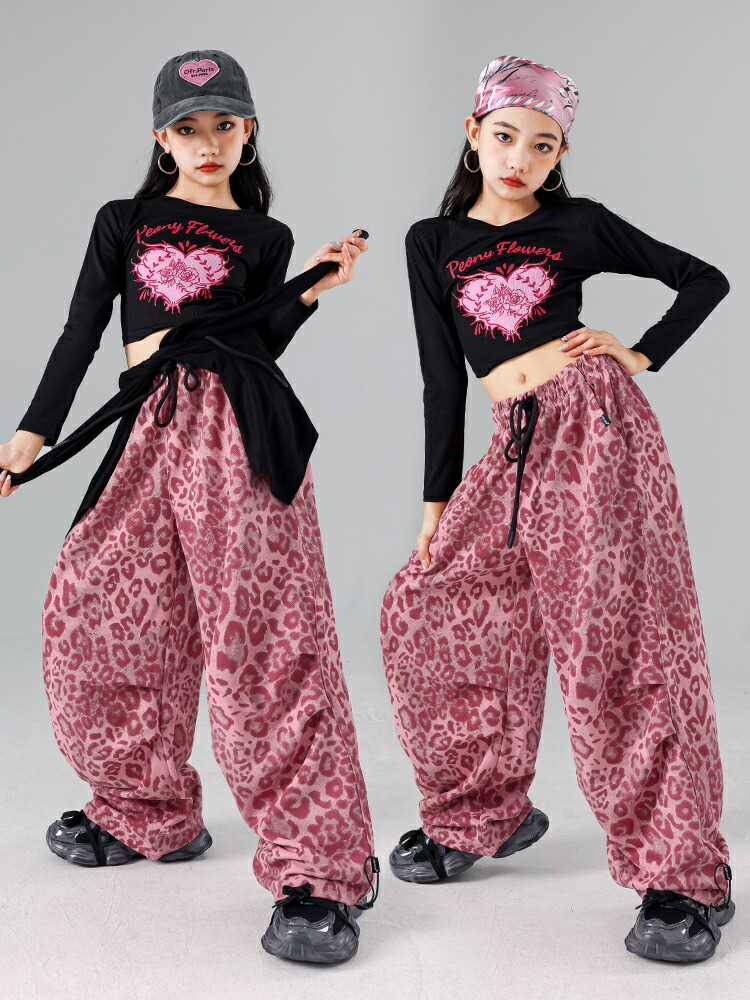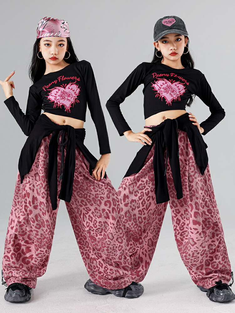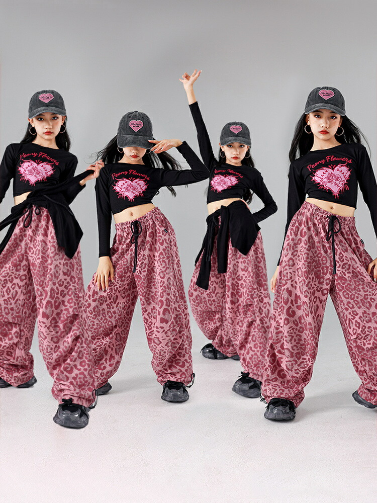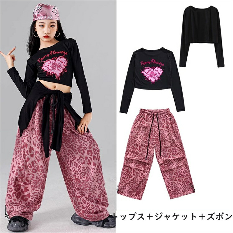 ヒョウ柄 子供服 キッズ ダンス衣装 キッズ スーツ カジュアルセットアップ カジュアルパンツセット 続々登場 トップス+ズボン トップス+ズボン+ジャケット ハート柄トップスのみ ヒョウ柄パンツのみ 黒ジャケットのみ 110 120 130 140 150 160 170
