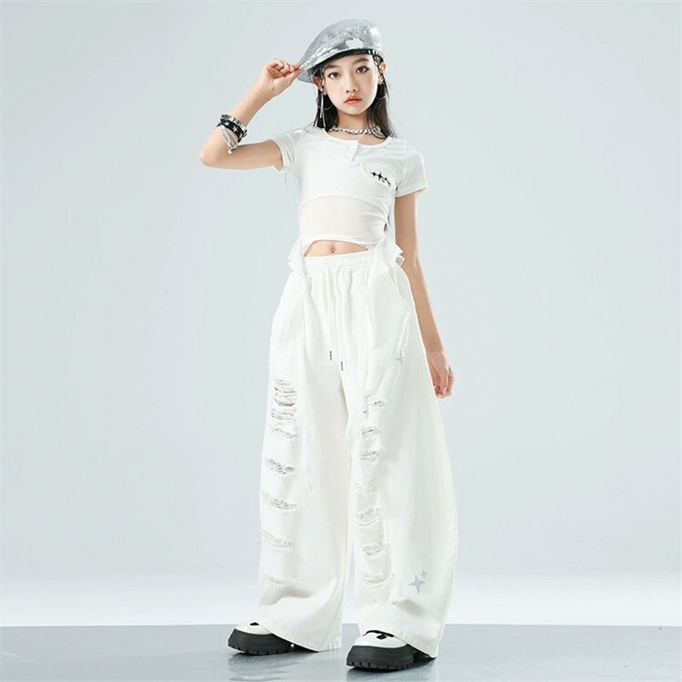 白 キッズ ダンス衣装 女の子 ダメー キッズ スーツ カジュアルセットアップ カジュアルパンツセット 新登場! トップスのみ ズボンのみ トップス+ズボン 120 130 140 150 160 170